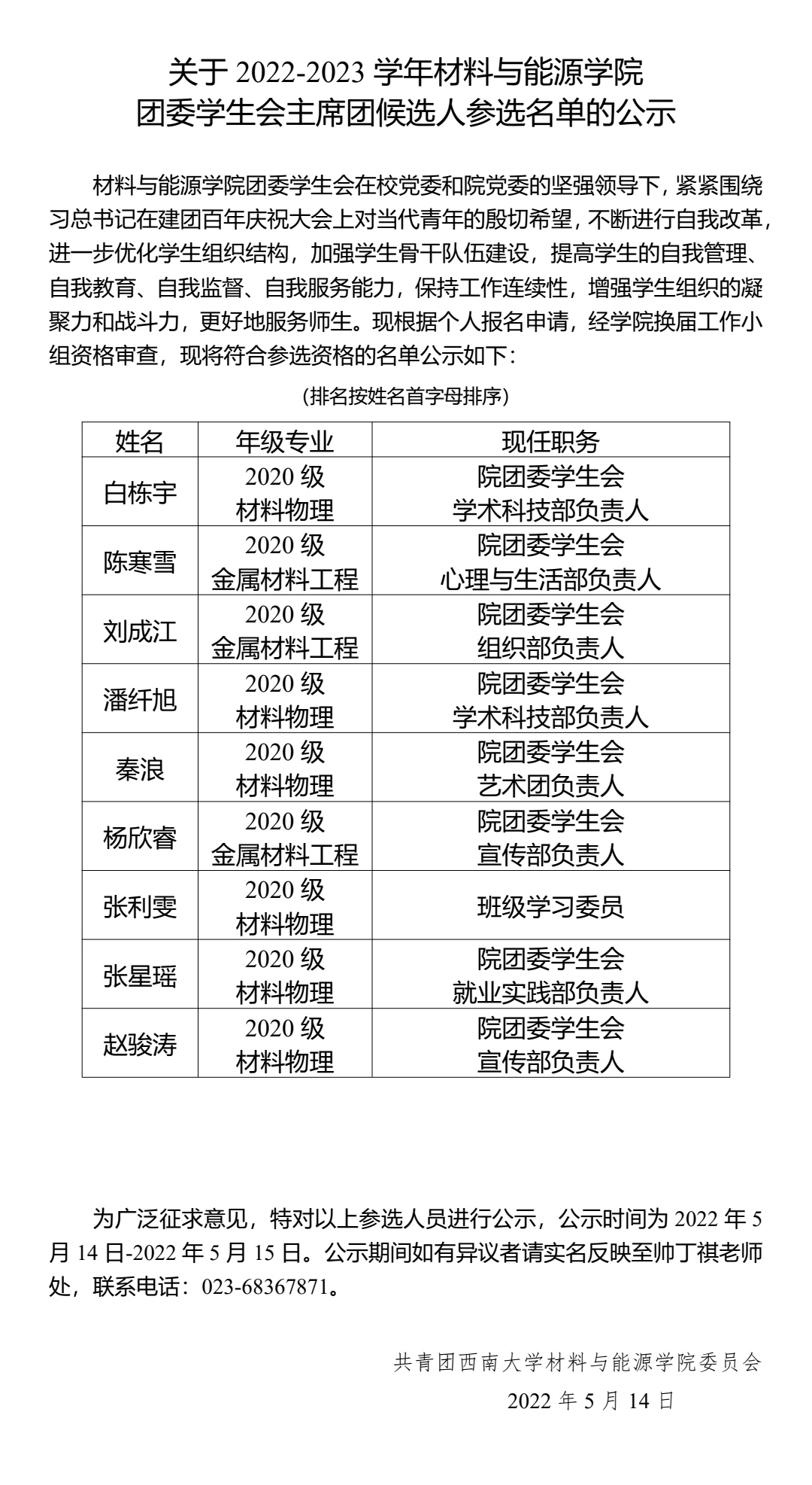 2022-2023学年伟德体育团委员工会主席团候选人参选名单公示