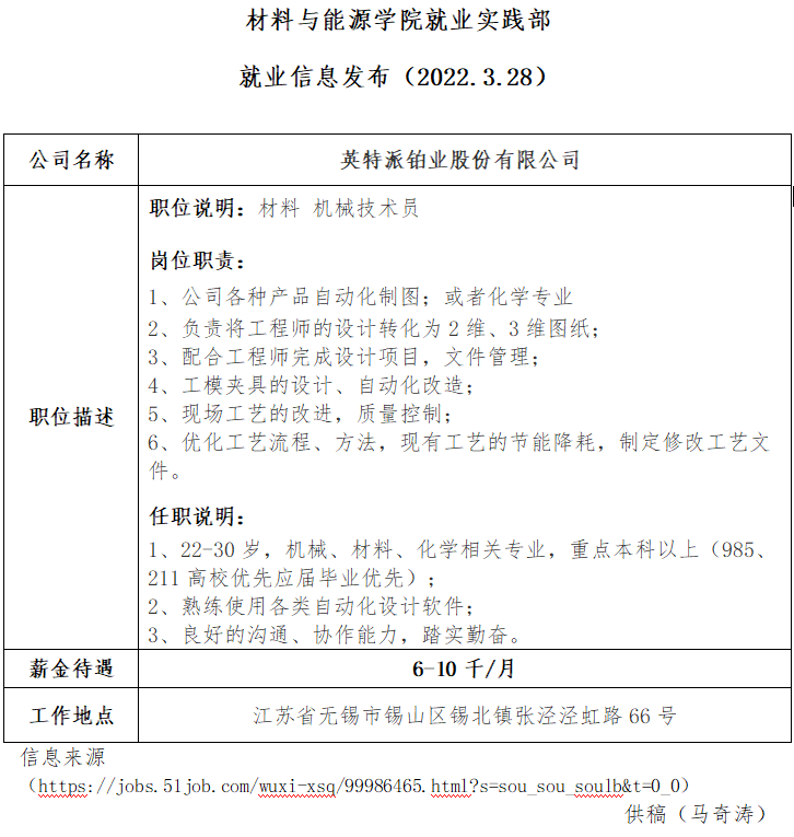 就业实践部发布(2022.3.28)—英特派铂业股份有限公司