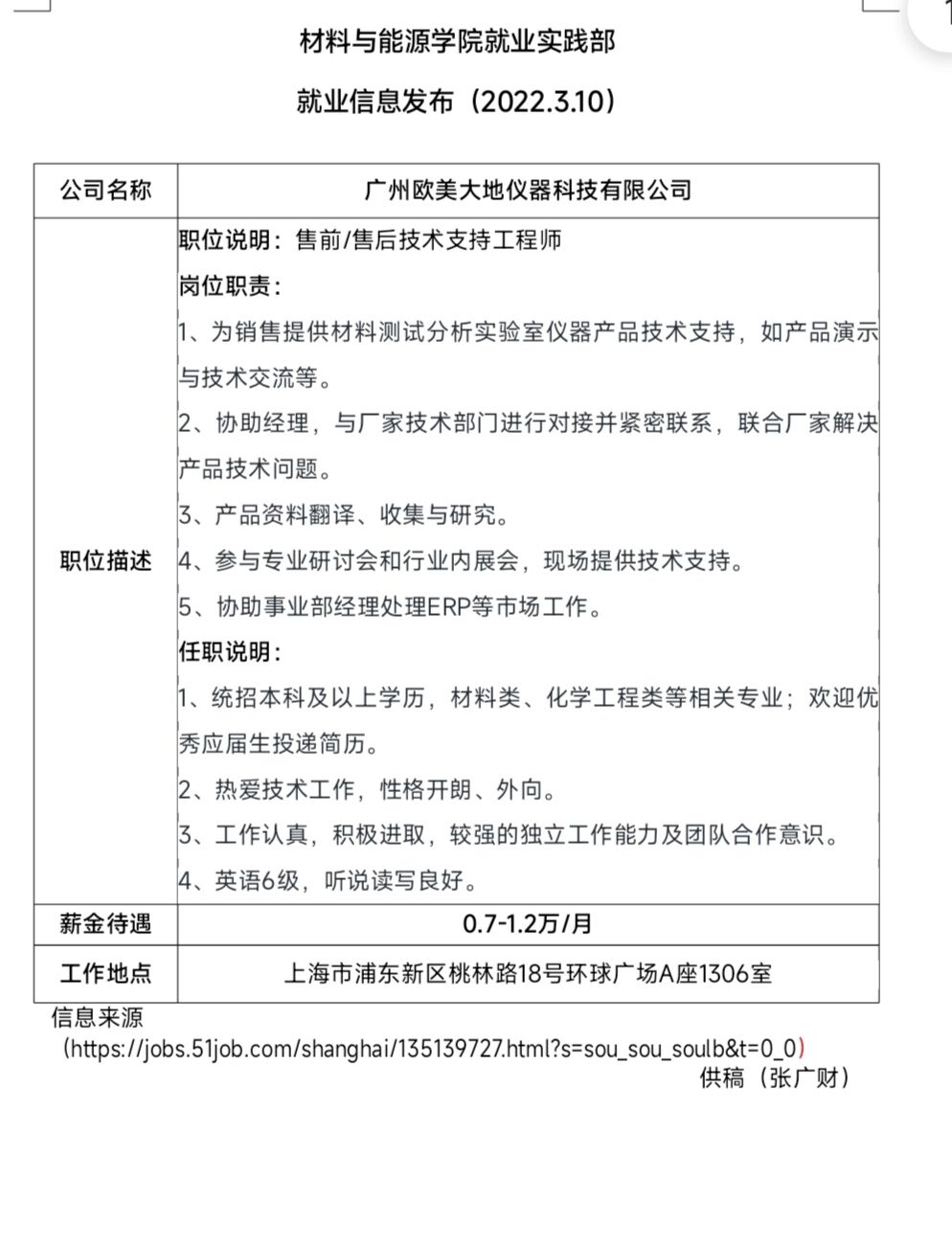 就业信息发布(2022.3.10)—广州欧美大地仪器科技有限公司