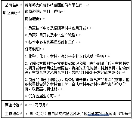 就业信息发布2021.10.5--苏州苏大维格科技集团股份有限公司