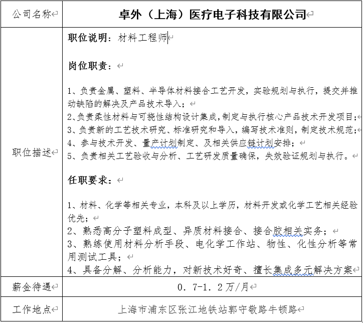 就业信息发布2021.6.14-卓外(上海)医疗电子科技有限公司