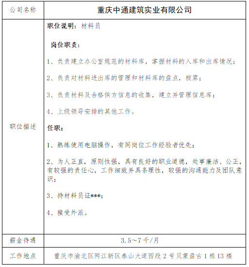 就业信息发布2021.4.02-重庆中通建筑实业有限公司