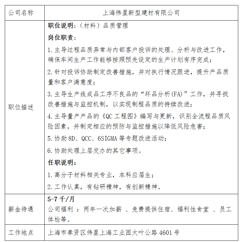 就业信息发布2020.10.12-上海伟星新型建材有限公司