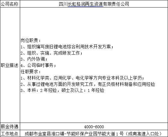就业创业中心20180518发布- 四川长虹格润再生资源有限责任公司