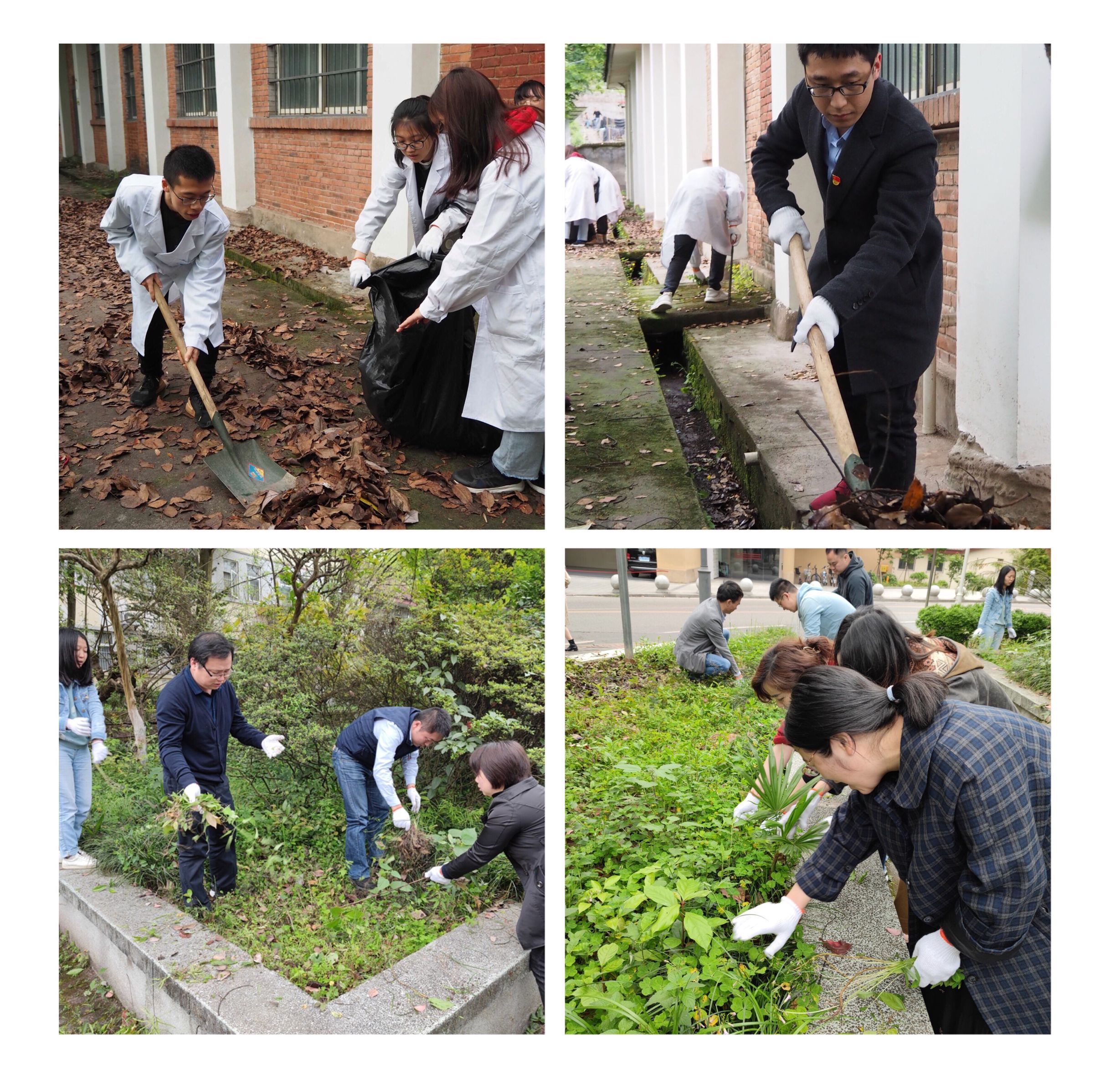 伟德体育主要办公楼和实验楼均为上世纪六、七十年代的老建筑,外围的绿化设施十分陈旧,绿化带中杂草丛生,卫生死角较多。此次志愿服务活动清扫范围包括21教的自习室及外围区域、22教及麦田村实验室外围区域等公司师生工作和学习的主要场所,主要任务是拔除绿化带中的杂草,清理卫生死角等。支部集中学习结束后,全体师生党员准备好扫帚、簸箕、铁锹、垃圾袋等清扫工具,在各支部书记的带领下,前往指定区域开展清扫工作。师生党员积极合作,分工明确,干劲十足,发扬“不怕脏、不怕苦、不怕累”的精神,争当“我为师生办实事”的践行者。经过全体师生党员的共同努力,清扫区域的面貌焕然一新。