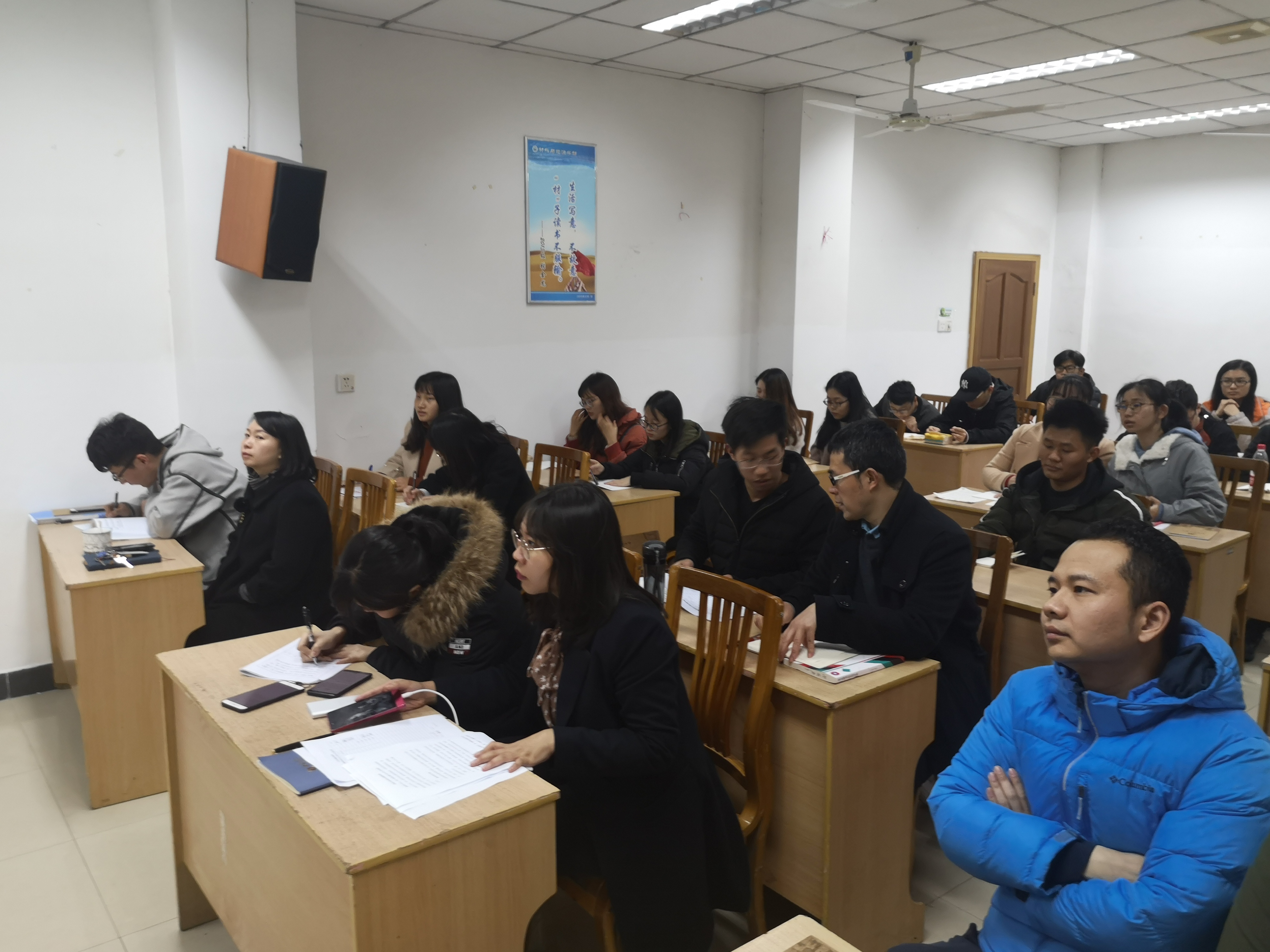 第三个环节是党员的批评与自我批评,支部10名党员依次展开自我批评,从自己学习党的理论知识、党支部工作表现、对发展党员及党员转正的监督、教学管理工作的作风与质量、与同学们交流讨论方面、发现的问题及解决方案等全方面批评自我,深刻检讨自己,然后其他党员同志也通过自己的观察、感受对他们做得好与不好的方面进行肯定与批评,党员都虚心接受,表示自己会改正不好的,把支部建设更好,让党员更好发挥先进带头作用。