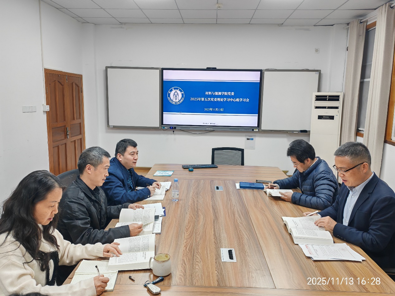 公司于11月13日下午在22教学楼208会议室召开2025年第五次党委理论学习中心组学习会,全体领导班子成员参会,公司党委书记梁武主持会议。