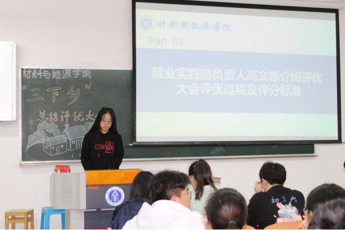 接下来,由就业实践部负责人高文郡介绍评优大会评优过程及评分标准。随后,参评小分队代表介绍了小队人员组成,简要介绍了活动过程以及展示了社会实践用的成果展。