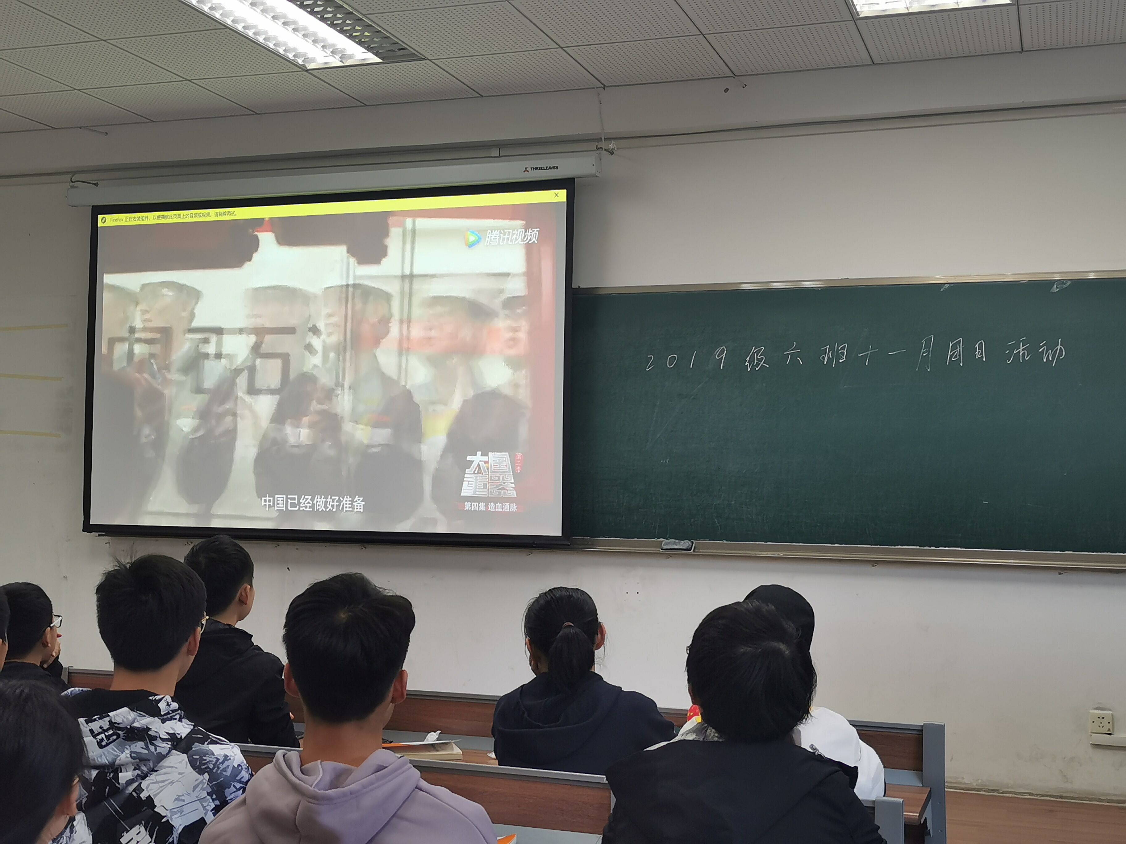 活动开始,第一个环节,先由团支书周佳艺简单介绍此次活动的主题及相关内容。随后,第二个环节,全体团员观看了《大国重器》纪录片,纪录片中科研工作者废寝忘食,锲而不舍的中国梦精神深深打动着每一位同学,中国近几年在科研上的突破大大提高,科学家工程师的努力也在科技渗透的同时得以体现。