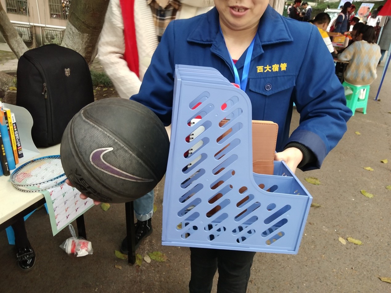 还有两位宿管阿姨拿网球拍,乒乓球拍、羽毛球拍等物品为他们的孙子孙女交换文具、篮球。也有同学主动捐赠他们的闲置物品,大力支持我们的志愿活动。