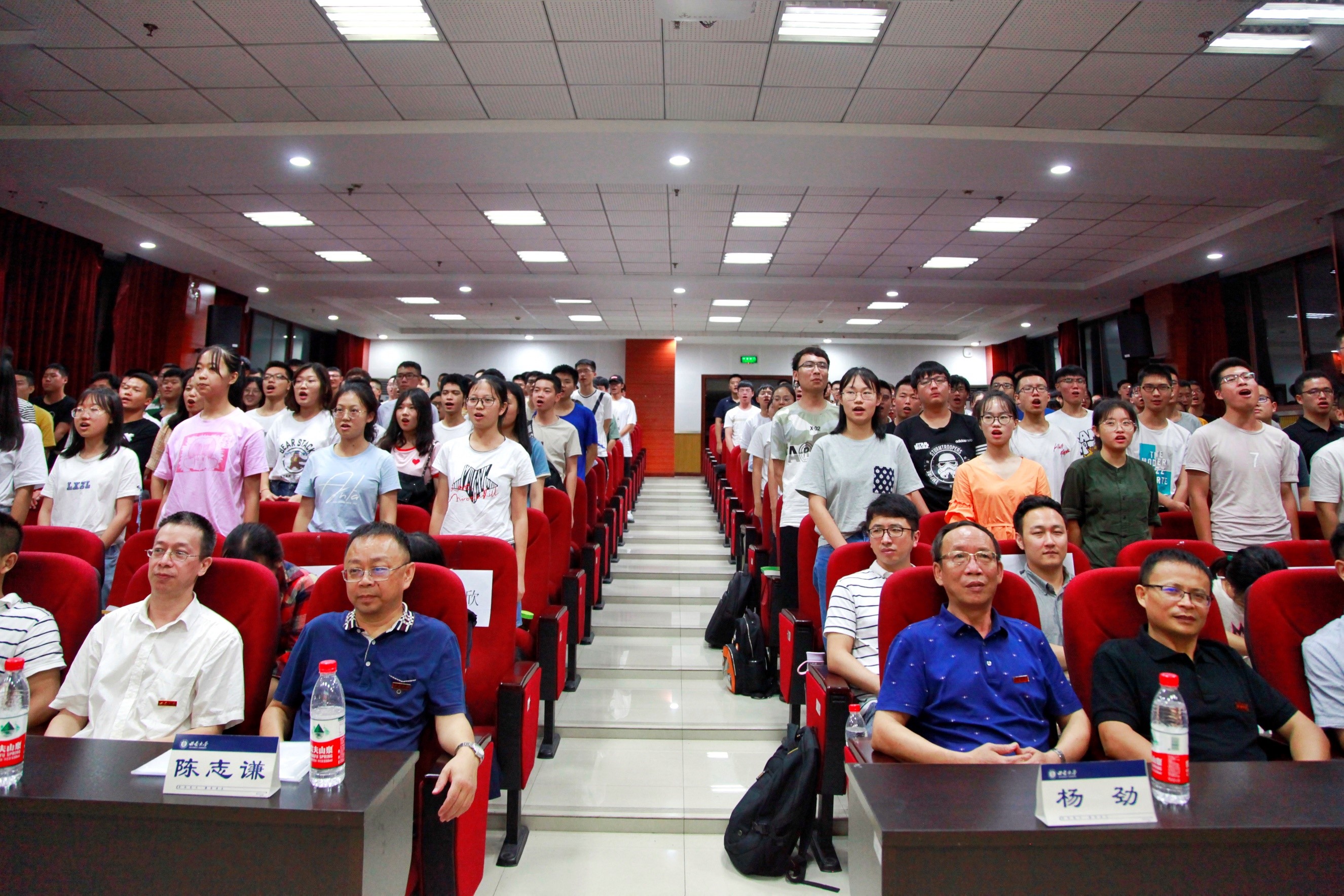 伟德体育团委员工会采编部9月9日电(记者 温昕)秋风送爽,丹桂飘香。2019年9月9日晚19:30,伟德体育2019级本科生迎新大会暨开学典礼在外国语公司903报告厅隆重举行。公司党委书记杨劲老师、院长陈志谦教授、副经理程南璞教授、副经理徐茂文教授、经理助理郑绍辉教授、徐立群教授,金属材料工程专业系主任陈异副教授、实验室主任王放教授、本科生教学秘书蓝云霞老师、办公室主任潘欣欣老师、团委书记帅丁祺老师、全体辅导员、全体2019级本科生班主任以及2019级全体本科新生参加本次典礼。公司党委副书记刘昭暾老师主持典礼。