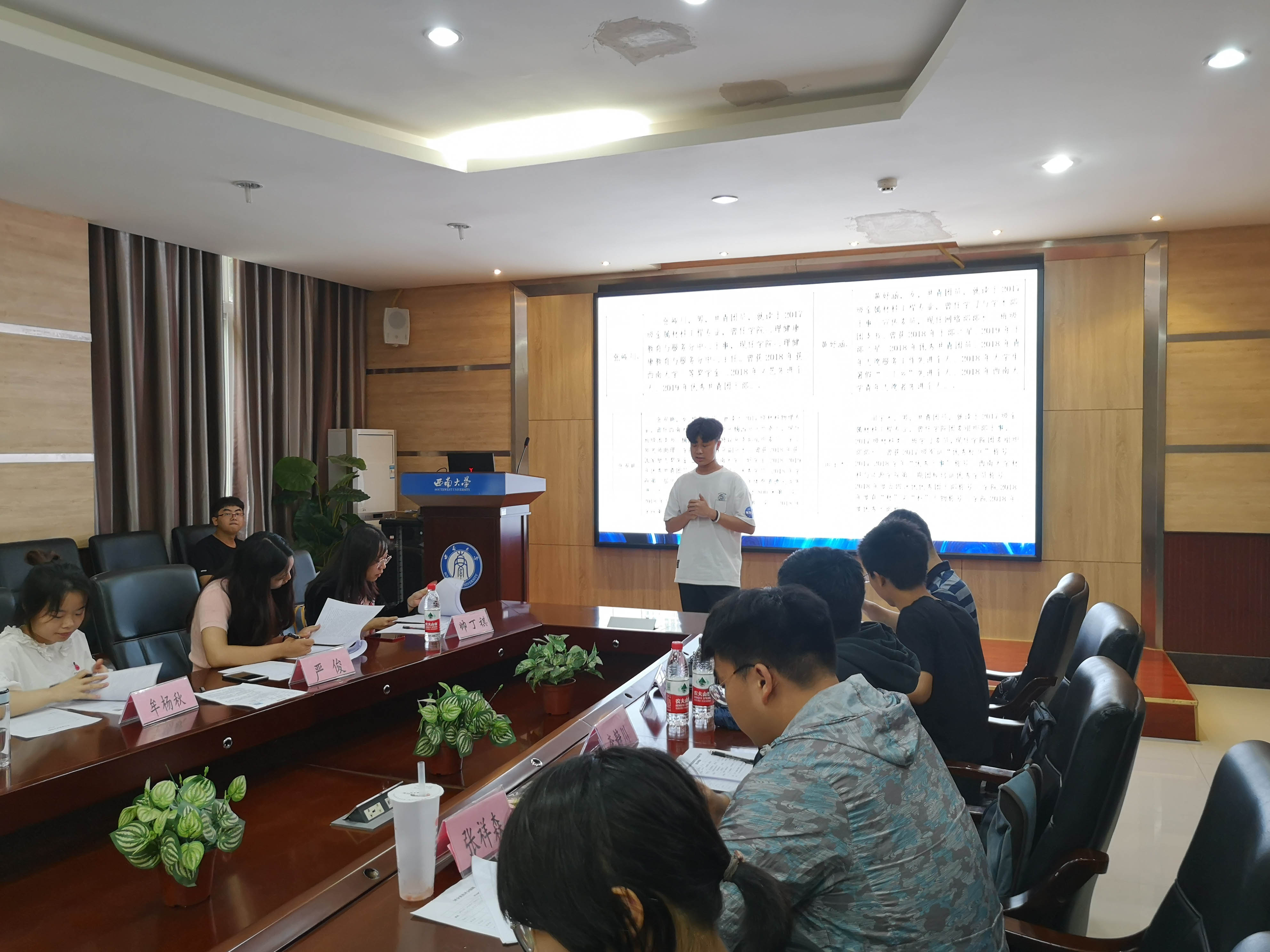 今年是公司团委员工会改革的第一年,为加强员工干部队伍建设,选举出更加受同学们喜爱的主席团成员,使团委员工会更好地为广大同学服务。2019年6月16日,伟德体育团委员工会第十四届主席团换届竞选在21教105室如期举行。公司党委副书记刘昭暾、团委书记帅丁祺、团委副书记何焕生、员工会主席严俊、员工会副主席杜聪玲、学通社社长张祥森、团委书记助理牟杨秋、员工事务中心主任李静川出席,他们组成了本次大会评审团。