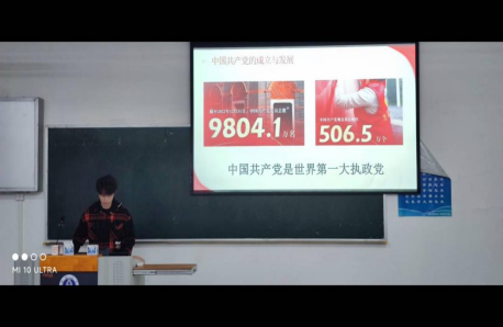 本场活动分三部分内容开展。第一部分活内容冯凌可同学着重介绍了党的成立与发展的历史,用视频的方式生动地让同学们感受到了“弱国无外交”的真理,并说明中国共产党的成立对中华民族复兴强盛的征途带来了巨大的贡献。