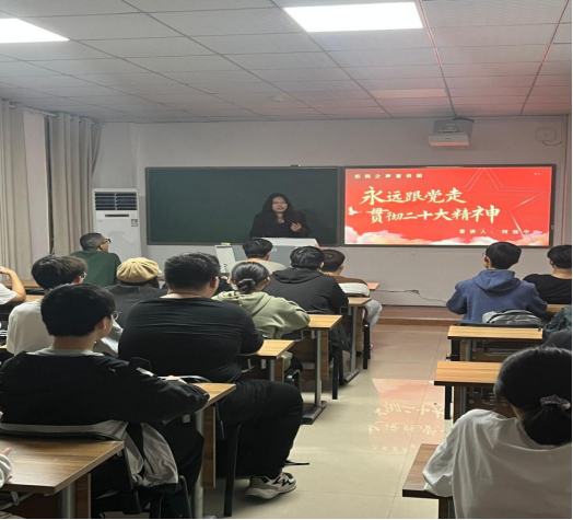 宣讲人徐思茹同学用PPT、视频、演讲三者结合的方式,以“起航新征程,永远跟党走”为主题,为同学们讲述“新中国的成立与发展”的光辉历程,并带领大家学习了党的二十大精神,弘扬材料强国的思想。徐思茹表示,要坚守“听党话、跟党走”的初心,在新征程中,勇担当、敢作为,不断增强实践本领,跟上时代发展步伐。