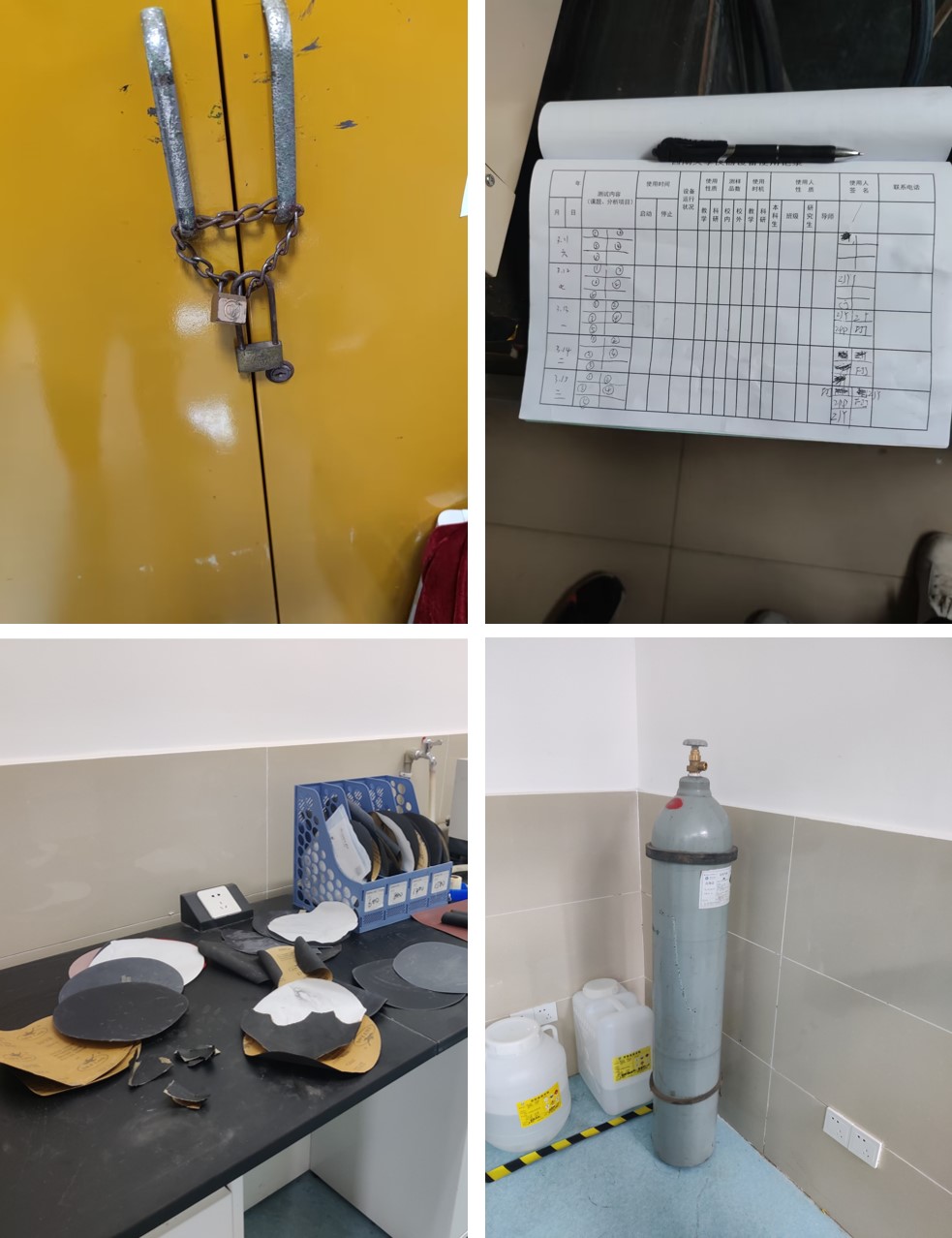 通过本次检查发现各实验室运转正常,但仍存在一些问题。首先是多个实验室存在的共性问题:实验室内使用完毕的无水乙醇未及时放回药品柜,除此之外,个别实验室还存在管制类化学品双人双锁管理不规范,高温炉使用记录登记不完整,气瓶未固定,实验台面杂乱,实验液体样品未贴标签等问题。公司安全工作组对检查中发现的问题作了详细记录,要求相关责任人高度重视,尽快完成安全问题整改,进一步强化实验室管理,为广大师生营造一个和谐安全的实验环境。