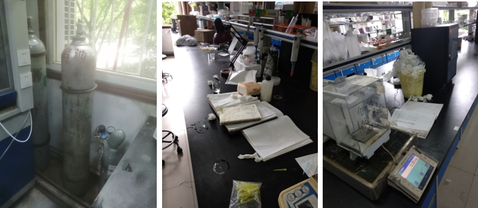 在安全检查过程中,工作小组详细查看了实验室的安全责任体系和制度建设、实验操作规程、登记记录、设施条件及相关标识等,特别是化学药品的存放、废液的储存和回收、气瓶的管理等情况做了重点检查。通过检查发现,目前公司实验室的管理日益规范,但仍存在一些安全隐患:21教学楼220实验室使用一氧化碳高危气体,气瓶未固定且缺乏相应的管理措施;21教410实验室垃圾乱放;后山实验室雨后漏水。安全工作小组在现场对检查中发现的问题做好了记录,要求相关责任人高度重视,尽快完成安全问题整改,进一步强化实验室管理,为广大师生营造一个和谐安全的实验环境。