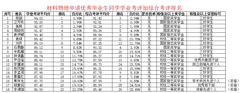 由员工本人提出申请,辅导员审查,公司员工综合考评和评优评奖工作领导小组研究确定初步名单,公司党政联席会通过,现对满足优秀本科毕业生要求的同学根据学业成绩排名先后进行公示: