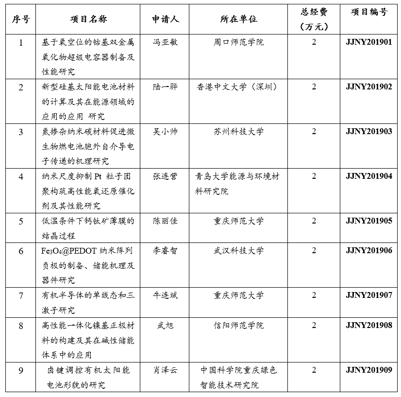 2019年重庆市洁净能源材料与技术重点实验室开放课题已完成申报、评审工作,现将通过专家评审拟立项的9项项目予以公示。