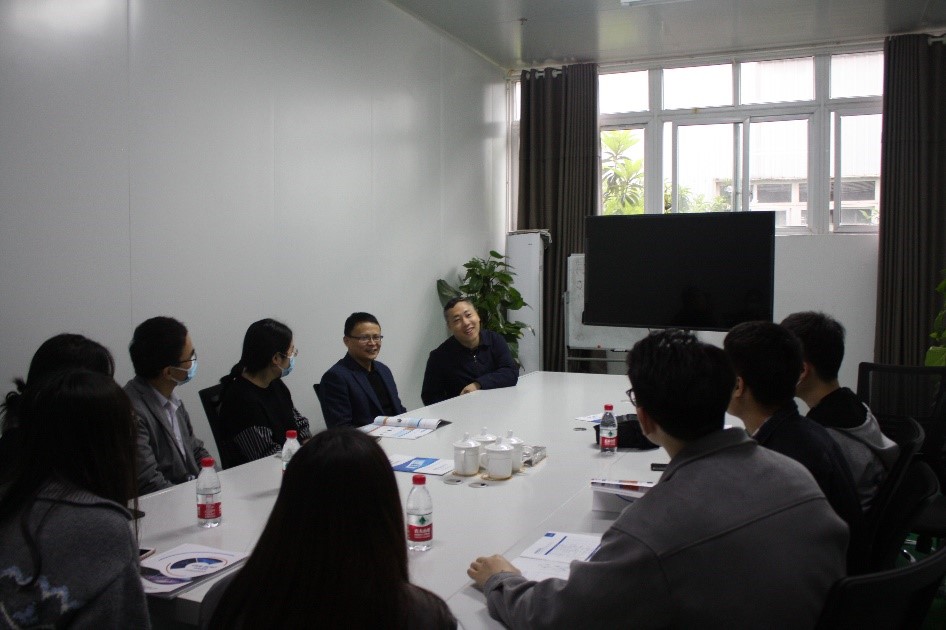 重庆中科超容科技有限公司的工作人员向我方介绍了其企业核心产品、生产运营情况以及生产线情况。在座谈交流环节,徐茂文教授首先就公司的储能研究方向与现有成果向企业相关负责人进行了全面介绍。刘双翼董事长也就其公司的发展历程以及生产运营基本概况与我方人员进行了交流。最后,双方就加深校企交流,推动科技成果转化等相关问题交换了意见。