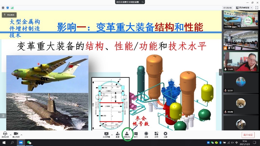 2021年12月3日,公司邀请了中国工程院院士、北京航空航天大学教授、博导王华明院士在线做“高性能大型关键构件增材制造技术对重大装备金属结构材料、结构设计及制造技术的影响”专题学术报告。