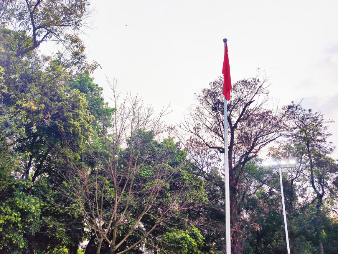 在朗朗的国歌声下,国旗冉冉升起。全体人员高唱国歌,现场气氛庄重肃穆。最后,在同学们的注视下,国旗缓缓升至旗杆顶端,随风招展。
