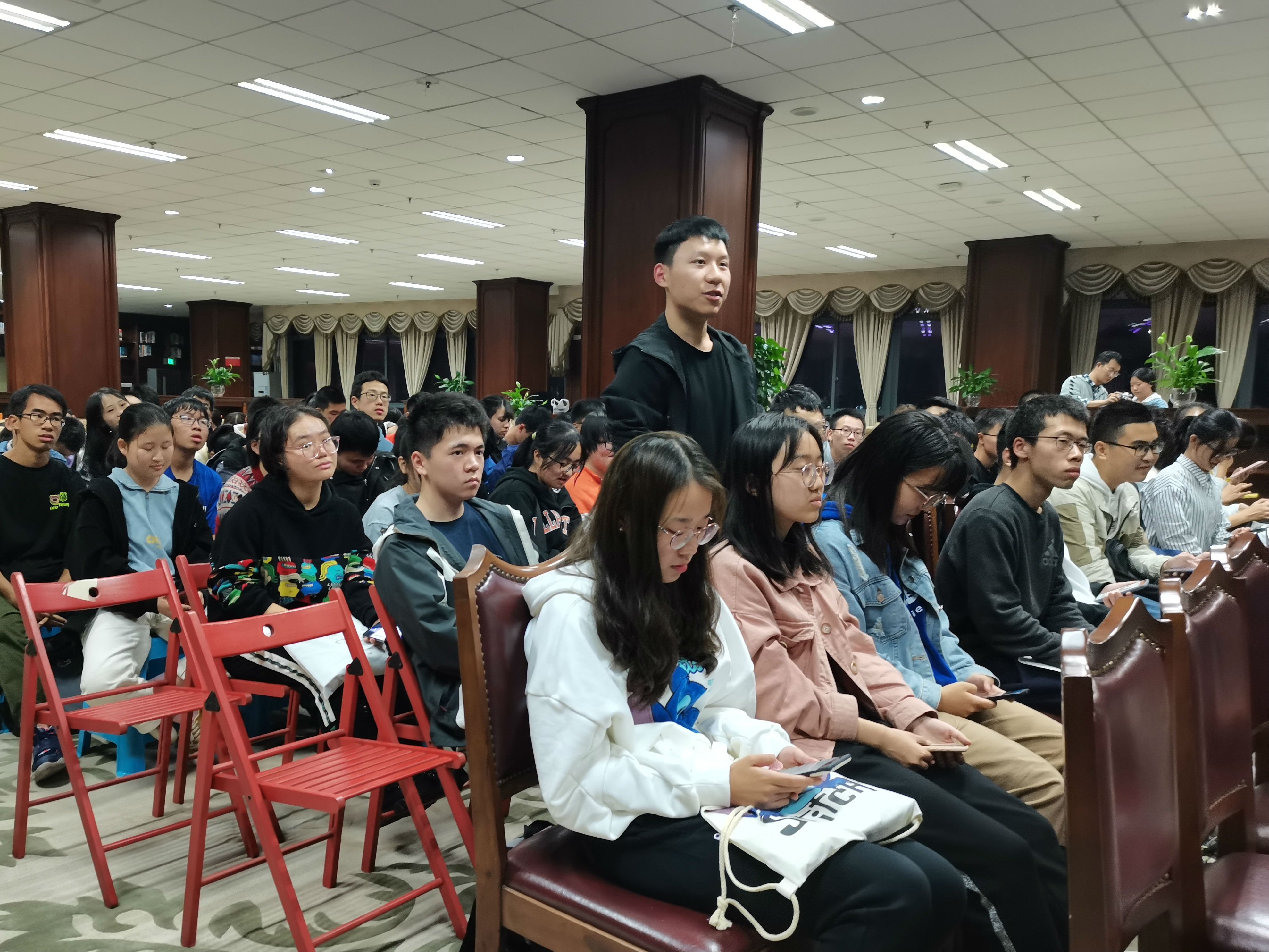 然后由宋群梁、蒋建、薛鹏和李凤吉老师开讲,他们先是简单介绍了自己的课题组项目,然后根据各自经历对同学们的老员工活提出了一些建议。老师们的讲述开拓了大家的学科视野,让同学们对材料类专业部分前沿领域有了一定的了解。他们的经验之谈也为大家合理规划集团生活及未来发展指明了方向。