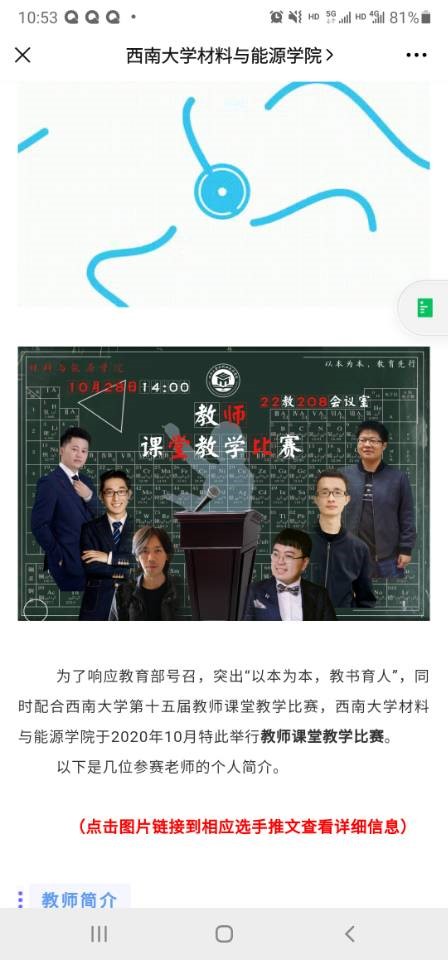 第一阶段,参赛教师推荐。由材料科学系、材料工程系、洁净能源与先进材料研究院内部通过听课等环节各推选出参赛教师两人。材料科学系推选出叶晋、于坤二位老师;材料工程系推选出谭小东、王杰二位老师;洁净能源与先进材料研究院推选出蒋建、李天浩二位老师;一共六位老师参加公司教学比赛。