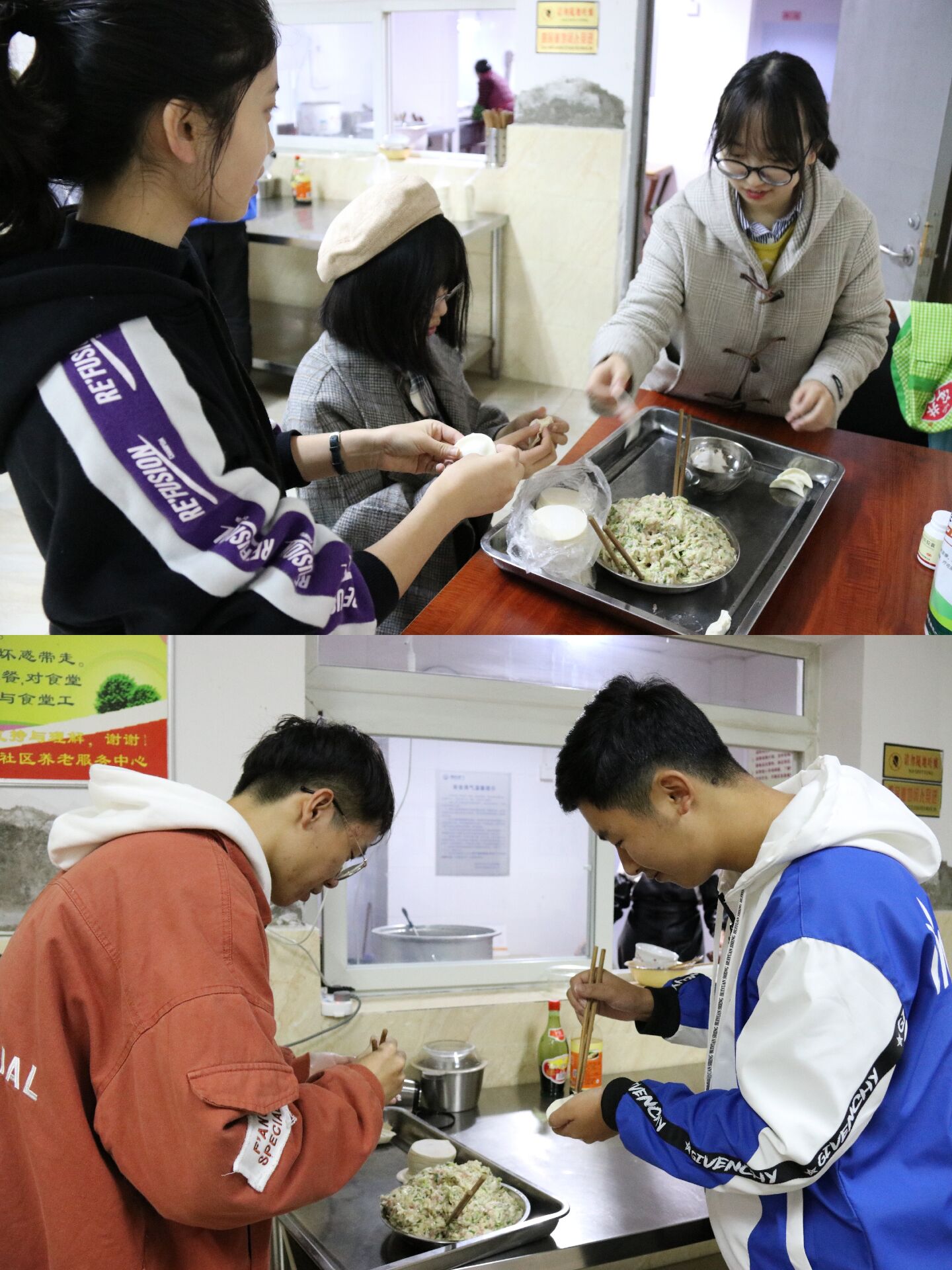 本次活动,志愿者们去到了重庆市北碚区奔月路敬老院。活动包括三个内容:包饺子、陪老人们聊天、文艺节目表演。食堂里,大家用购买的原料为老人们包起了饺子,整整齐齐的饺子饱含着志愿者们的祝福。活动厅里,一些志愿者们在麻将桌旁,陪老人们休闲娱乐;一些志愿者们和老人们亲近地交谈。随后,志愿者们表演了四个舞蹈节目,合唱了《我和我的祖国》和《我的中国心》两首歌曲。伴随着志愿者们悠扬的歌声,老人们也吃上了志愿者们亲手包的热气腾腾的饺子。活动最后,大家合影留念。至此,本次伟德体育2019年度团校志愿者活动圆满结束。