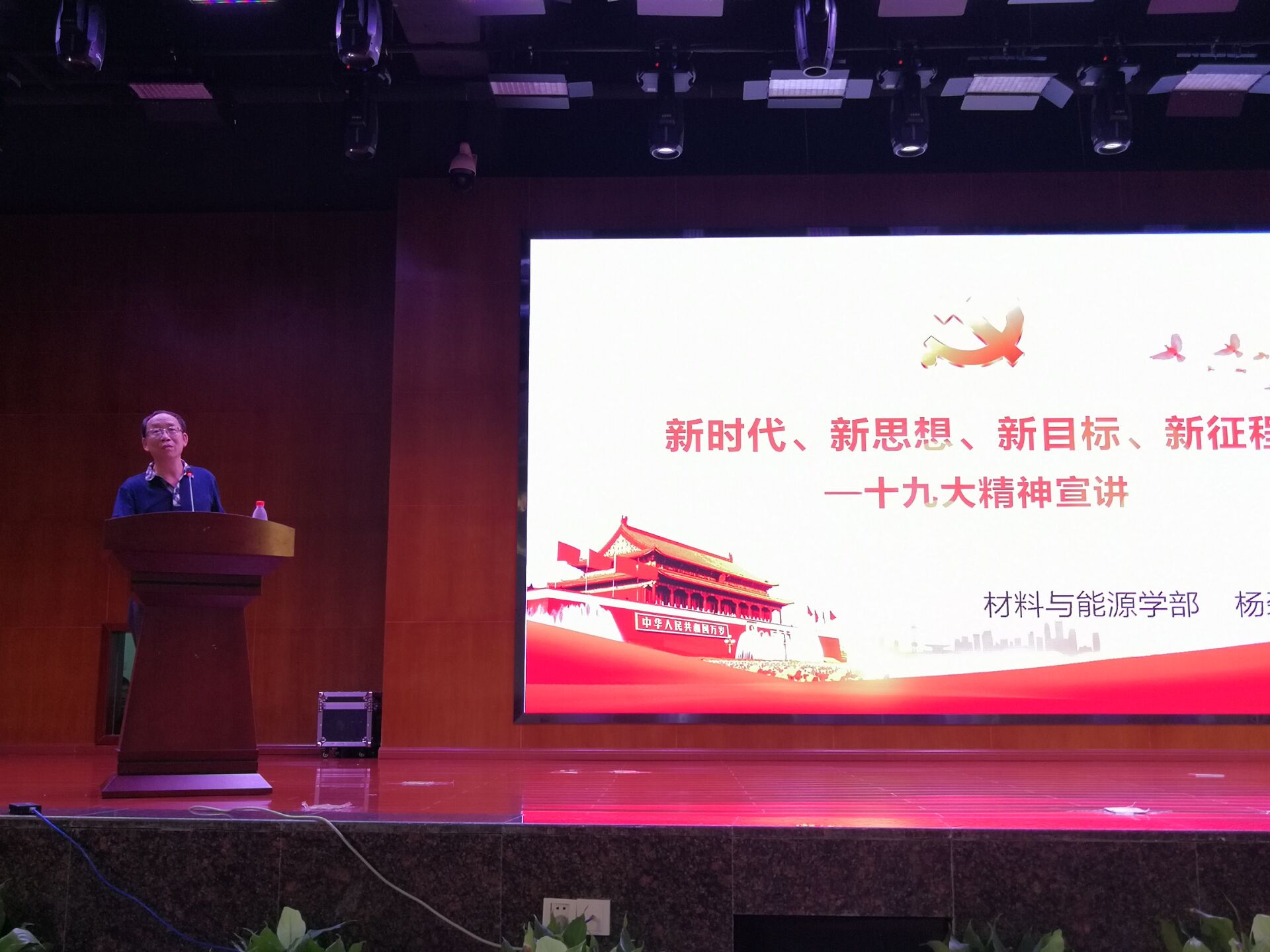 真材实料员工通讯社27日(记者 强伟鹏)为深入学习贯彻习近平新时代中国特色社会主义思想和党的十九大精神,根据公司、学部统一安排和部署,9月27日15:30分,材料与能源学部于第二活动中心107室向2018级全体新生举行学习党的十九大精神专题讲座。党委书记杨劲做专题授课,团委副书记何焕生主持讲座。