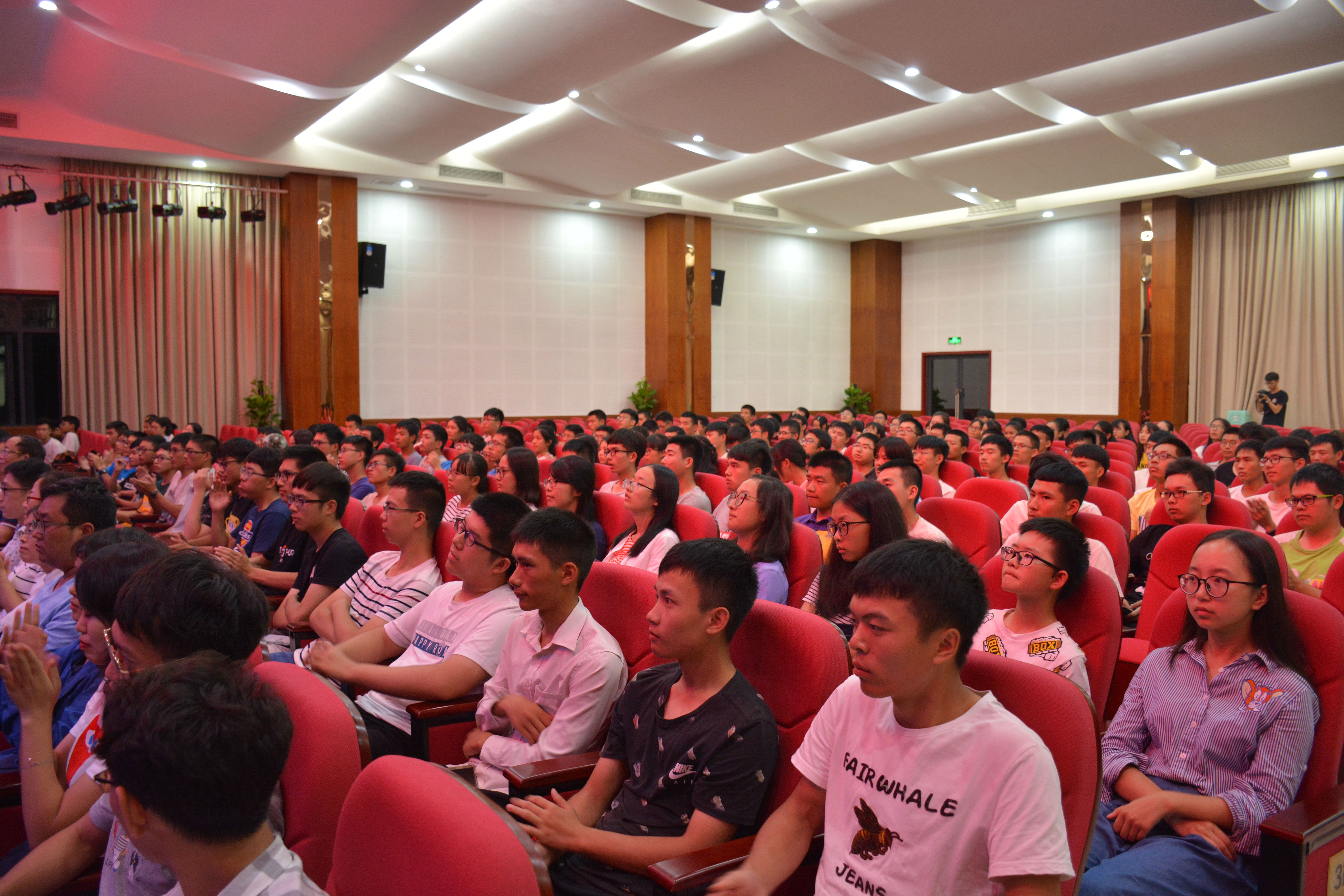 “要认真听好每一堂课,不要将中学的分数主义带入大学,而要以掌握课程精髓为目的” “努力的大学才会幸运”,2016级员工代表黄祥龙如是说到。2017级员工代表余林江以《成为眼里有光芒的大人》为题,讲到“大学是一扇通往自由和自主的大门,解开了未成年的枷锁,也给了我们更多的时间去思考,去选择,即便我们是平庸的,但也要一直保持对知识的渴望。”新生代表潘梦青表达了对过去的告别以及对即将开始的老员工活的憧憬和希望,也说出了新生们对于自由独立积极追求的态度和面对挑战的勇气与自信。新生代表谢勤用他拍摄的视频作品《致青春》描述了自己的迷茫和瞬间的成长,表达了“生命不息,奋斗不止”的主题。