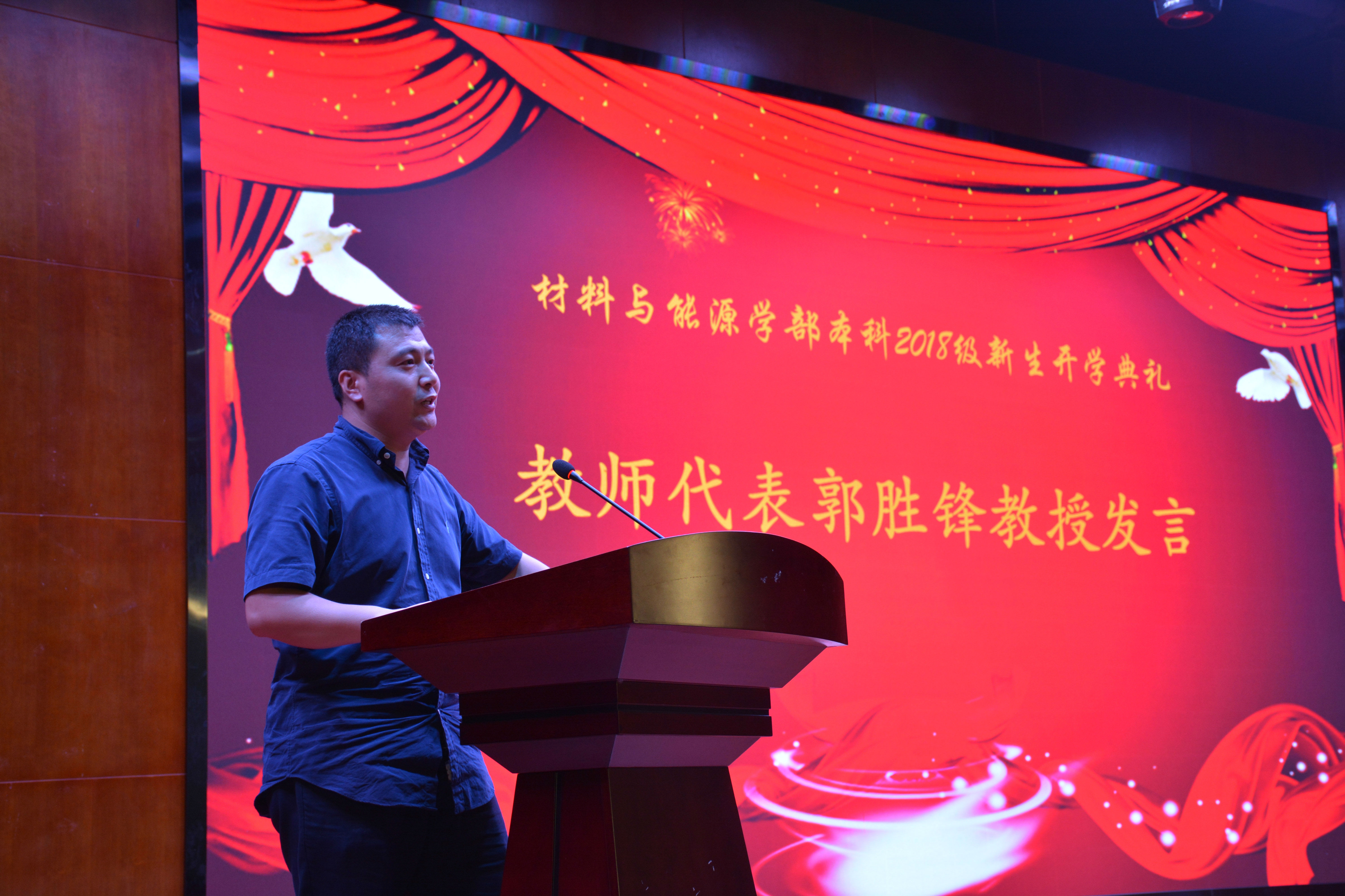 教师代表郭胜锋教授在发言中向同学们提出了三个关键词:梦想、勤奋、担当。他期望同学们目光长远,思考人生中的大学问;勤奋上进,过一个拼搏无悔的青春;勇于担当,担当起时代的责任。