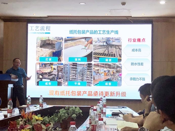 随后,公司林华教授精心展示了自己的代表性项目成果——“格林兰”生物基胶及酒糟高附加值利用技术,指出了产业化路径的主要难点及解决途径,期待能够有机会与普什集团展开合作;徐茂文经理介绍了其团队在酒糟衍生的高性能硬碳负极材料上取得的重要进展;李路教授分享了其研究历程以及在模具制造方面积累的研究经验。食品科学公司阮长晴副教授围绕普什集团在高阻隔PET食品包装材料方面的技术需求展开讨论,并详细介绍了其在阻隔性羧甲基纤维素材料开发以及团队成员在高热阻、高强度聚乳酸包装材料熔融加工方面取得的最新进展。蚕桑纺织与生物技术公司蓝光芊副经理介绍了其在蚕丝止血材料、棉花纤维高附加值利用方面积累的丰硕成果。工程技术公司申志康教授和周平副教授等介绍了其团队的主要研究方向,期望能够对接普什集团的项目需求。