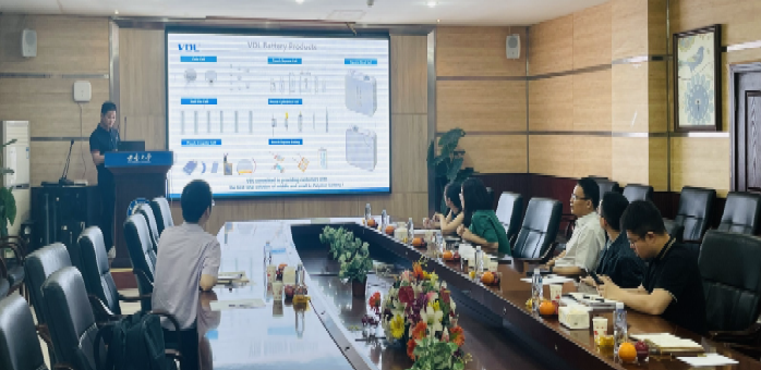重庆市紫建新能源有限公司研究院经理赵宇向公司介绍了紫建电子(VDL)集团公司及研究院的发展历史,VDL公司是一家已经上市的重庆市新能源企业,在重庆市北碚、开州和万州以及广东省深圳和东莞等地有多个生产制造基地及研发基地,主要专注于消费类可充电锂离子电池产品,如用于蓝牙耳机、智能手表、VR/AR眼镜、智能音箱、平板等产品,并且有钢壳纽扣、钢壳针型、软包异型等不同外形的锂离子电池。VDL公司在研发方面投入力度很大,主要从材料、平台、产品、前沿等四个方面进行研发,同时也积极布局前沿电池技术,愿意与高校和科研机构进行深入的产学研合作。赵宇经理欢迎公司前往VDL公司和研究院进行调研交流。