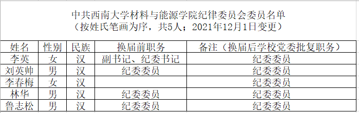 公司纪委委员名单(2021.12—)